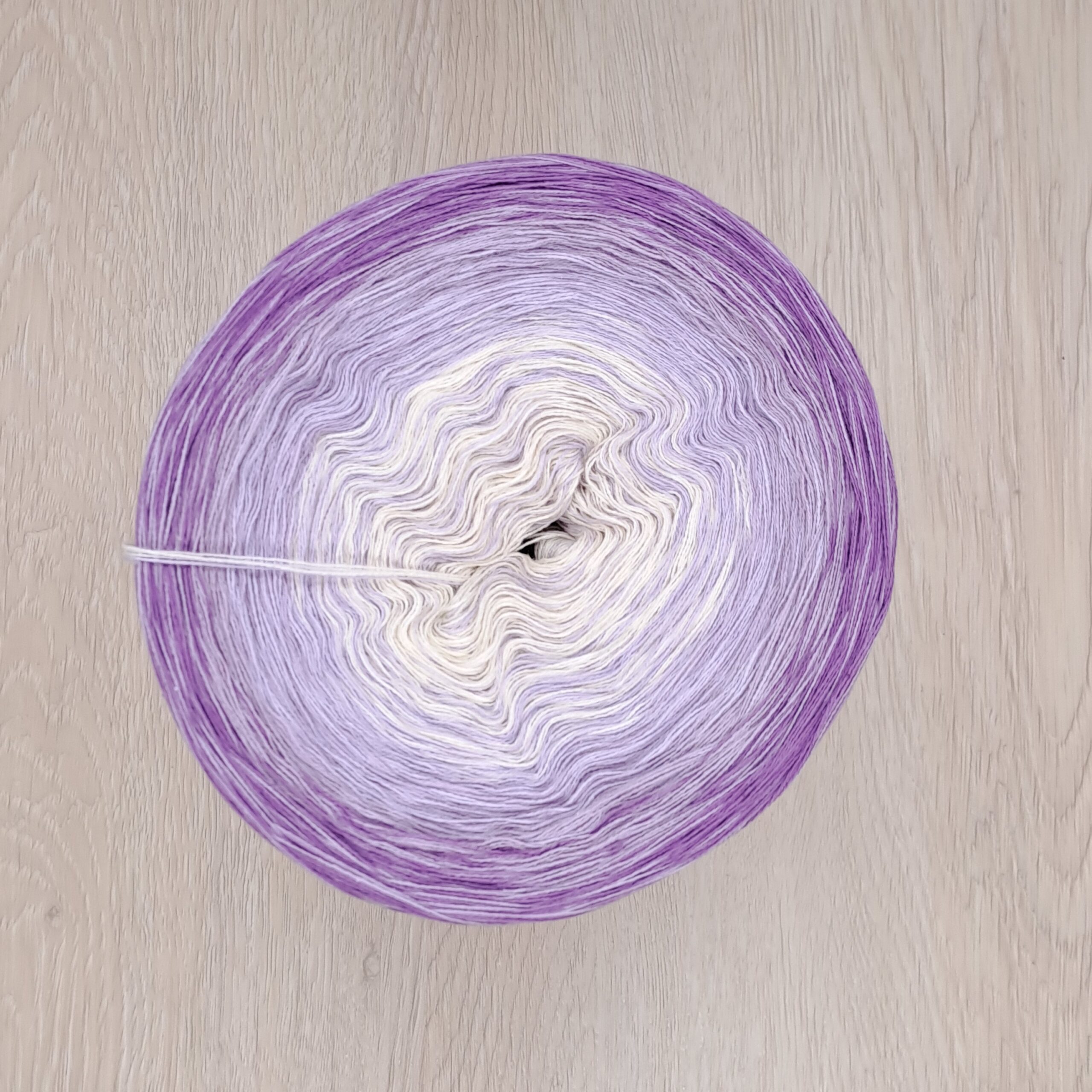 Dieser Bobbel ist im sanften Verlauf gewickelt (die Farben wechseln in gleichen Abständen OHNE uni-Abschnitte).