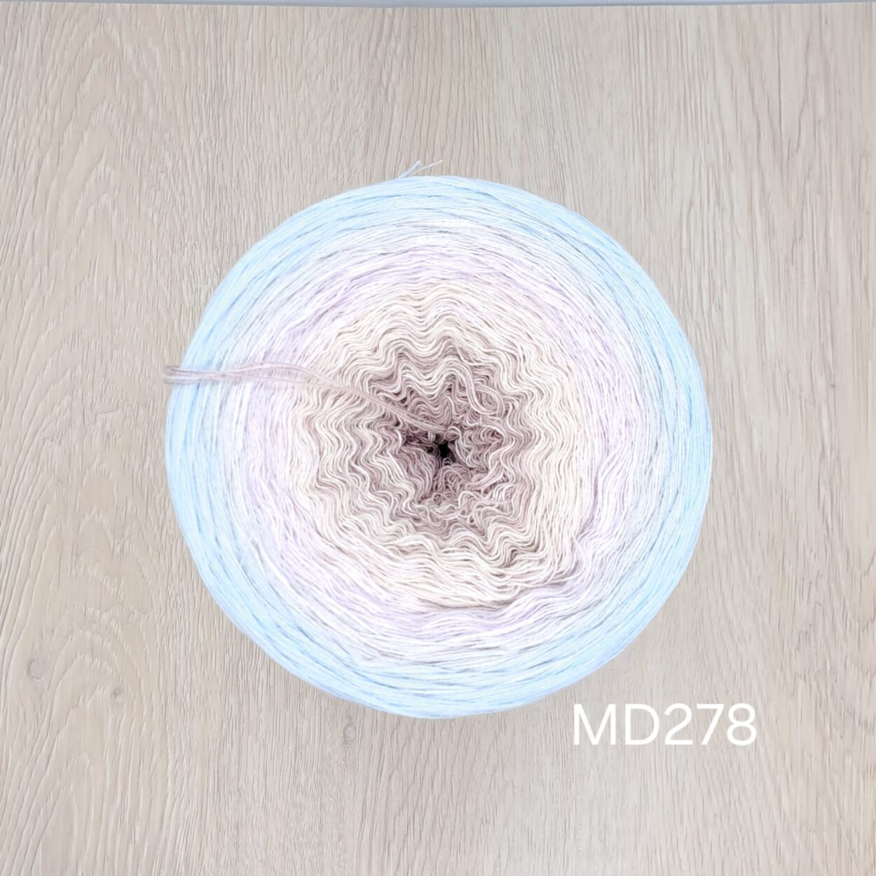Dieser Bobbel ist im sanften Verlauf gewickelt (die Farben wechseln in gleichen Abständen OHNE uni-Abschnitte).