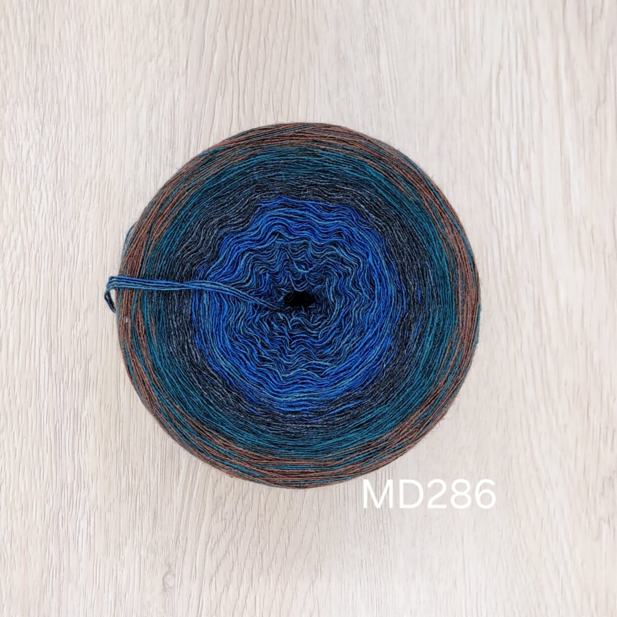 Dieser Bobbel ist im sanften Verlauf gewickelt (die Farben wechseln in gleichen Abständen OHNE uni-Abschnitte).